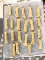 - Prendre un peu de pâte, former une boule puis rouler autour d’un verre et former une cigarette entre vos mains. Tremper le gâteau dans le sucre cristal.